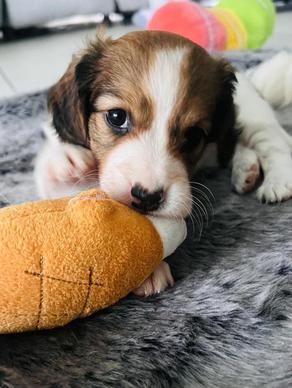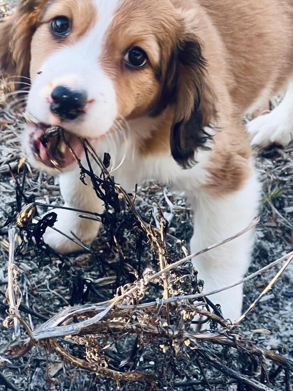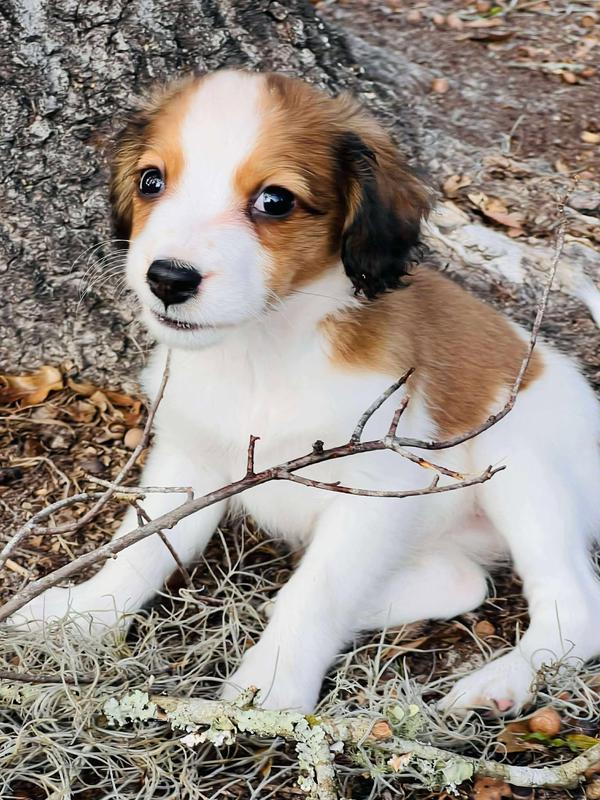 Glinda is cute as a buttom. She is a just a small little thing and gosh darn, they just don't come more adorable than this little "on the go" gal. She loves to explore on her own and is such a confident, sweet, so precious ittle peanut. She is a very bright, darling Kooiker and one can just see those little wheels in her head turning, as she anticipates her next adventure. She is very affectionate and will give kisses to family and strangers just the same. I anticipate her adult weight being no more than 20 pounds. Being on the smaller size makes her a perfect traveling companion, as she most likely wil fit under the seat even into adulthood. I do get many families that would love a kooiker this size for that purpose as they visit family and freinds often by plane. Most of our Kooikers are just over that size. This lovable little firecracker is $5200 and will be ready to join her new family end of February 2026. *On a side note* Glinda is always on the go, making it so hard to get pictures. LMAO