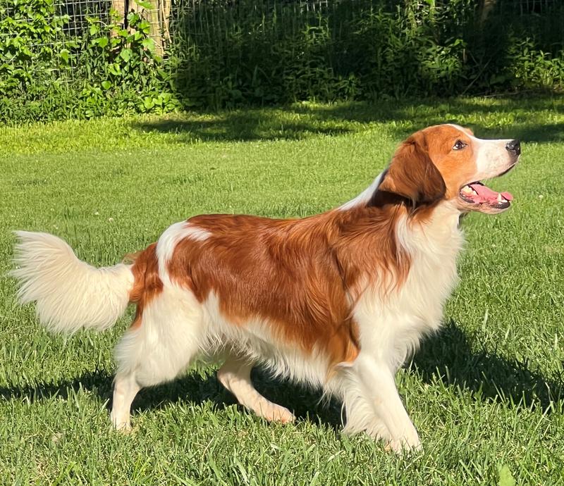 Lacey is line bred on some of our finest Ambermoon Kooikers, going back many generations to our very best. All are the sweetest, best tempered Kooikers in our outstanding lineage. Every single dog in Lacey's pedigree has produced nothing but warmhearted, extremely loving, affectionate, and devoted family companions. And Lacey holds true to her pedigree. Lacey is such a love of a girl. Very easy going, mild mannered non reactive sweetheart. Lacey's idea of a good time is just hanging with "us" (her family) and going with the flow. Lacey loves "off leash" walks and hanging by the pool or just relaxing with her canine siblings. Lacey eagerly accepts all and any "pets" from strangers. We adore this special girl.